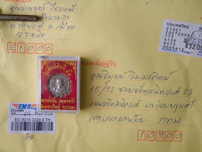 ผมเห็นความตื่นเต้นในการขอจองเหรียญหน้าแหนบ ของหลวงปู่สิน วัดละหารใหญ่ เมื่อประมาณ 2อาทิตย์ก่อน ก็ได้ โทรไปเรียนถาม ท่านครูน้อย ว่า ท่านได้จองไว้บ้างหรือเปล่า ตอนนั้น ท่านก็ปฎิเสธว่าเปล่า ไม่มี มีพร้อมแหนบเอาไหม... ผมก็นึกว่าเราคงไม่มีบุญ จะได้เหรียญหน้าแหนบ ก็ตอบเรียนท่านกลับไปว่า ผมไม่ชอบแหนบ ครับ คงต้องขอผ่านไป ...... เวลาก็ผ่านไปจนผมลืมแล้วครับ .. วันนี้ประมาณ 1000 น. บุรุษไปรษณีย์ก็นำซอง EMS มาให้ผม ... ปรากฎว่าเป็นเหรียญหน้าแหนบ ที่ผมอยากได้ .... ท่านครูน้อย ให้ผมมา บูชา (ฟรีๆ) ครับ .......ผมขอบพระคุณ ท่านครูน้อยไว้ ณ ที่นี้ ครับผม ที่ท่านเมตตาผมมาตลอด มีแต่ให้ ให้ แล้วก็ ให้ ครับผม  |