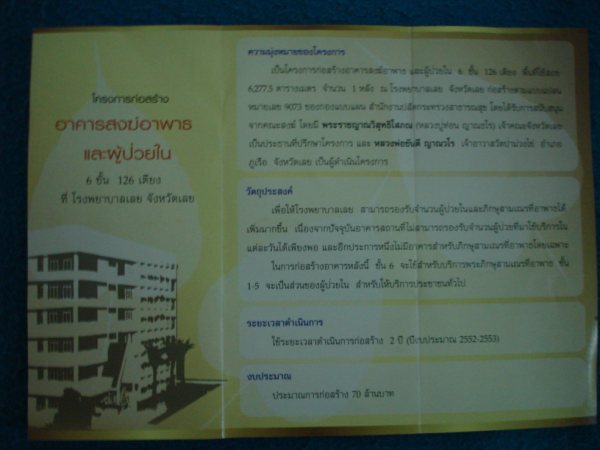 ขอเชิญร่วมทำบุญก่อสร้างอาคารสงฆ์อาพาธ และผู้ป่วยใน 6 ชั้น 126 เตียง ตึกบูรพาจาร์ โรงพยาบาลเลย