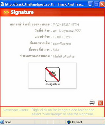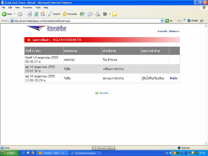 ผมได้จัดส่งให้พี่เมื่อวันที่ 14 พ.ค. 55 และได้แจ้งเลขที่จัดส่งทาง feedback