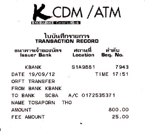 ส่งเอกสารสำเนาสลิปโอนเงิน มาให้ครับ