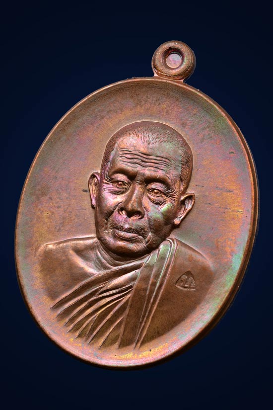 ทองแดงลงยา จีวร มีปีก หลังเรียบจารมือ๑เหรียญ
