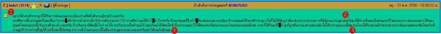 (2) มรรยาทคุณแย่มาก มากล่าวหาผมแบบนี้ ผมมีน้ำใจให้กับผู้ชนะประมูลของผมทุกท่าน นับตั้งแต่ผมเข้ามาตั้งและร่วมประมูลที่เว็บแห่งนี้ การันตีเลยว่า มีศักดิ์ศรีเพียงพอครับ