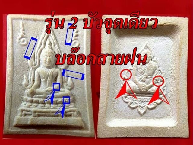พระคำข้าวรุ่น 2 ก็มีบล๊อคสายฝน ตำหนิด้านหลังจะไม่เหมือนกัน จริงๆจะมีจุดที่ศอก แต่มีคนใจบาปและเห็นแก่เงิน ลบจุดตรงข้อศอกของหลวงพ่อออก เพื่อที่จะขายเป็นรุ่น 1 ซึ่งราคารุ่น 1กับรุ่น 2 ราคาต่างกันมาก |