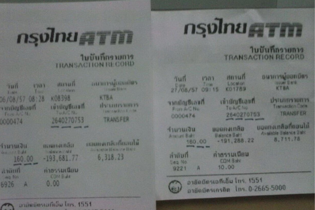 และโอนอีก 27 สค 57 จำนวน 160 บาทนะครับ ผม