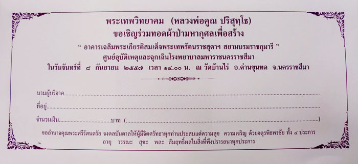 ผมเอาซองมาจากโรงพยาบาลมหาราชครับ ตามนี้เลย ใครที่รักหลวงพ่อมากกกก งานนี้ไม่มีแจกเหรียญ ไม่มีนำฤกษ์ ไม่มีเข้าแถวรับบัตรคิว ไม่มีหน้าม้า ไม่มีผู้สร้าง มีแต่ไปเสียเงิน เพื่อสร้างบุญล้วนๆครับ เชิญนะครับ ไปเข้าแถวยื้อแย่งซองผ้าป่ากันได้เหมือนตอนไปรับพระฟรี ไม่มีแม่ชีมาตะโกนด่า ท่านจะวนกี่รอบก้ได้ ได้ซองแล้วเอามาแห่นอกวัดให้คนทำบุญก็ได้ เชิญศิษย์หลวงพ่อทุกท่านครับ ตึกที่โรงพยาบาลกำลังสร้างพร้อมๆกัน 3 ตึกต้องใช้เงินอีกมากครับ |