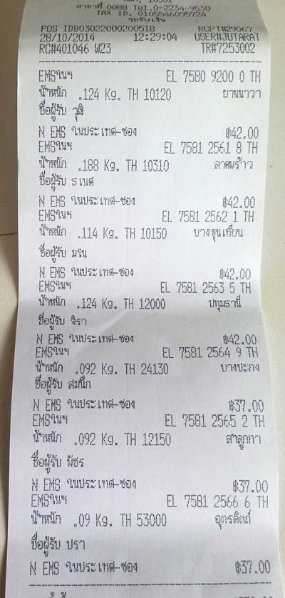 | หัวข้อกระทู้ : แจ้งเลขEMSส่งตะกรุดดับเดือนดับตะวันฯของพี่ๆที่จองกับ Singh_Amulet ครับ |