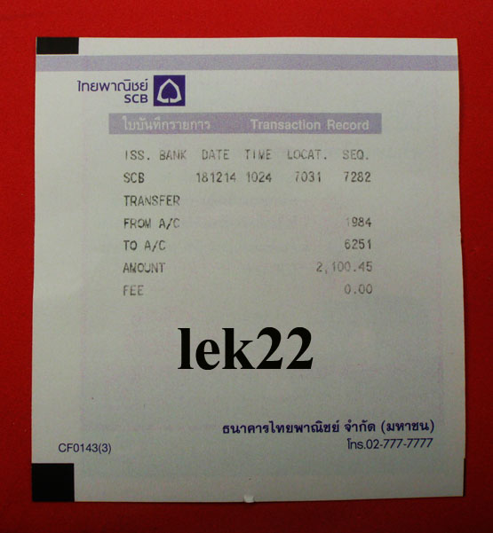 á¨é§â͹à§Ô¹ 2,100.45 ºÒ· ãËéáÅéǤÃѺ