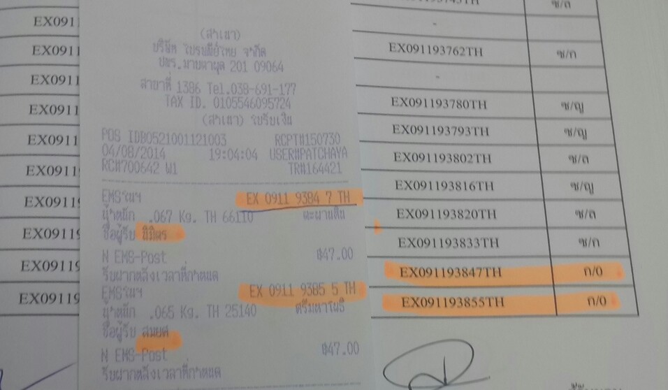 มีเเต่ข้อมูลการส่งของคือEX091193847th