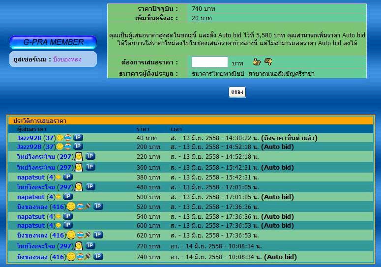 พระที่ท่านตั้งประมูลตามรายการนี้ https://www.g-pra.com/auction/view.php?aid=14029743 ทางเราได้เคาะเข้าร่วมประมูล แต่! ได้เคาะราคา Auto bid ผิดไปที่ราคา 5,580 ซึ่งเป็นราคาที่เกินจริง(เคาะเลข 5 เบิ้ล 2 ครั้ง) ดังนั้นทางเราจึงอยากจะขออภัยท่านและขอให้ท่านได้ทำการยกเลิกรายการนี้ด้วยนะคะ