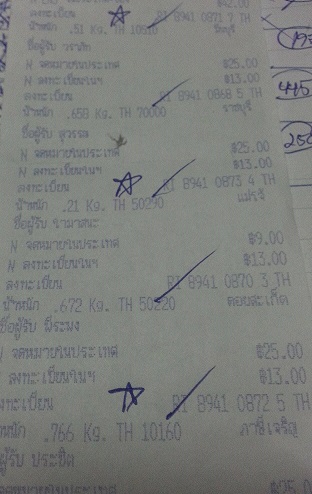 จัดส่งพัสดุให้กับเพื่อนสมาชิกแล้ว แต่ว่า ผลการตรวจสอบ พัสดุค้างอยู่ที่ ปณ. ตอนนี้เลยเอาสลิปมาตรวจสอบ