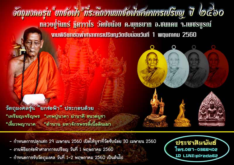 ผ่านพ้นไปแล้วครับสำหรับการเปิดจองวัตถุมงคลเจริญพร หลวงปู่จันทร์ วัดซับน้อย ในรุ่น "ยกช่อฟ้า"