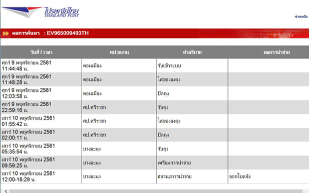 พรุ่งนี้เสาร์ที่ 17 ครบ 7 วัน ที่ออกใบแจ้งแล้ว เจ้าของพัสดุต้องไปรับที่ทำการนำจ่ายตามใบแจ้ง ถ้าไม่ไปรับพัสดุก็จะตีกลับต้นทาง