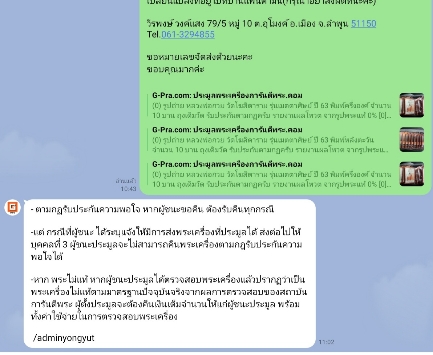 -แต่ กรณีที่ผู้ชนะ ได้ระบุแจ้งให้มีการส่งพระเครื่องที่ประมูลได้ ส่งต่อไปให้บุคคลที่ 3 ผู้ชนะประมูลจะไม่สามารถคืนพระเครื่องตามกฎรับประกันความพอใจได้