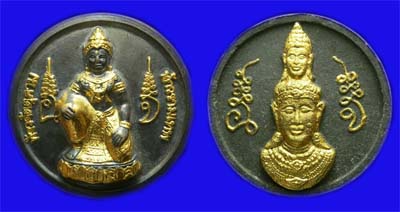 พูดถึงเงินไหลมา พิมพ์หน้ากากโลหะ ของวัดพระธาตุ ปี 2549 ที่แท้ ๆ ผมได้เช่าบูชามามี 3 แบบครับ 1. หน้ากากโลหะไม่ตอกเลข ด้านหลังเป็นเนื้อก้นครกรูปพระธาตุ, 2. หน้ากากโลหะตอกเลข ด้านหลังเป็นเนื้อก้นครกรูปพระพุทธสิหิงค์, 3. คล้าย ๆ แบบที่ 2 ครับ แต่ที่พิเศษสุดคือด้านหลังที่เป็นพระพุทธสิหิงค์นั้นได้ปัดทองแถมมาให้จากวัด (แบบอื่นด้านหลังไม่ได้ปัดทอง) แบบที่ 3 นี้ปัดทองทั้ง 2 ด้านนับว่าสวยสุด ๆ และหายากองค์จริง ๆ ไม่เห็นมีใครวางขาย เก็บกันหมดเลย ผมเองก็มี 1 องค์เก็บไว้ก่อน..อิ ๆ เอาไว้ประกวด หรือได้ราคาดีกว่านี้ค่อยว่ากันใหม่ นอกจากนั้นแล้วก็เห็นมีประเภทหลงหูหลงตาผู้ผลิตไปบ้างเช่นเป็นแบบที่ 2 แต่ลืมตอกเลข หรือเป็นพระก้นครกพิมพ์หน้ากากแต่ความจริงแล้วไม่มีหน้ากาก ก็อนุโลมให้เป็นพระแท้เงินไหลมา พิมพ์หน้ากากไม่ว่ากัน
