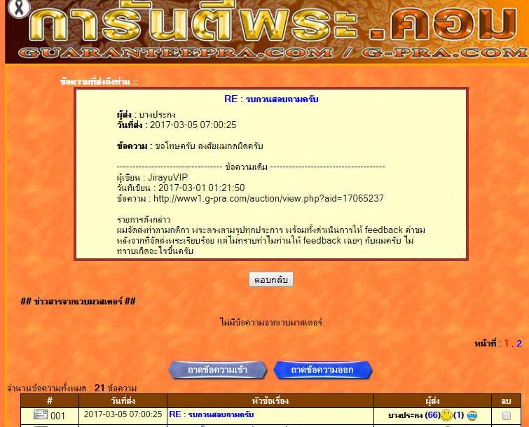 - ผู้ชนะประมูลเมลล์ตอบกลับมา วันที่ 5/3/60 ว่ากดผิดครับ