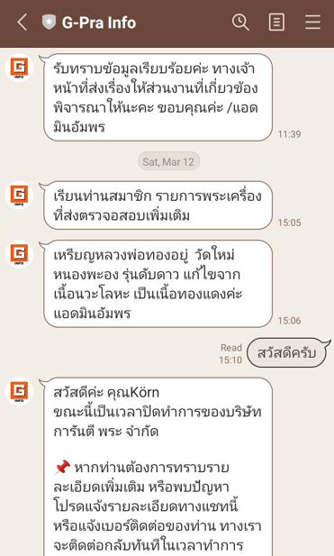 เนื่องจากผมได้ประมูลพระเนื้อนวะโลหะมา 1 องค์ พร้อมบัตรรับรองเดิม (บัตรออกปี 59) ซึ่งผมได้เก็บไว้ประมาณเกือบ 1 ปี ตั้งใจจะไปเลี่ยมจับกรอง จึงมีโอกาสได้ไปตรวจสอบเนื้อพระ จึงได้ทราบว่าพระองค์นี้เป็นเนื้องทองแดง ไม่ใช่เนื้อนวะโลหะ ตามที่บัตรรับรองออกให้ จึงได้แจ้งไปยังสถาบันการันตีพระ ทางสถาบันก็มีการยืนยันเนื้อพระแล้ว ปัจจุบันเรื่องผ่านมาได้ 4 เดือนแล้ว แต่ไม่มีความคืบหน้าเลย ผมจึงจะขอรบกวนสอบถามครับ ผมสามารถติดต่อช่องทางไหนได้อีกบ้างครับ ผมเริ่มจะท้อแล้วครับ |