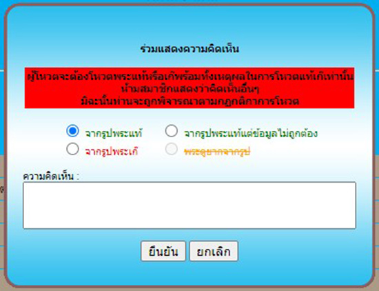 แต่ปัจจุบันจากการพบเห็น สมาชิกมาปรึกษา และมีกระทู้เกิดขึ้นหลายกระทู้ เรื่องการโหวตที่ไม่น่าจะถูกต้อง เช่น ไม่มีข้อความอธิบาย เช่น เก๊ครับ ไม่แท้ครับ / หรือโหวตกรณีที่ไม่เกี่ยวกับพระเก๊แท้อย่างไร เช่น พื้นที่ไม่เล่น ไม่น่าจะดี ลองส่งออกบัตรดู / ขอภาพเพิ่มเติม / ส่งออกบัตรได้ไหม ใช้ช่องทางโหวตสำหรับถาม อะไรประมาณนี้