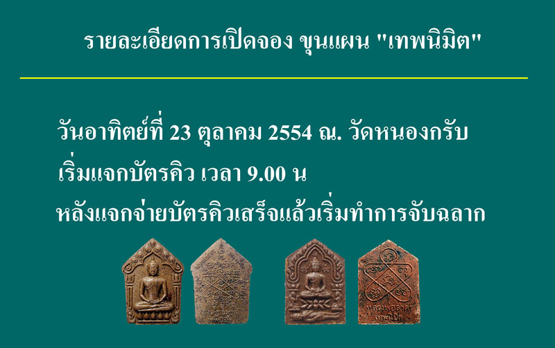 พรุ่งนี้ วันอาทิตย์ที่ 23 ตุลาคม 2554 ทางวัดหนองกรับ ได้ทำการเปิดจอง ขุนแผน "เทพนิมิต"