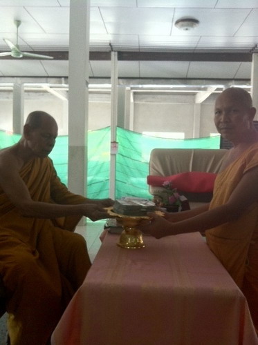 รูปแรกเป็นการนำเงินมาถวายจำนวน 1,000,000 บาท โดยอาจารย์โถ่ง(เงินบางจากการบูชาแพะหล่ออุดผงรุ่นแรก)