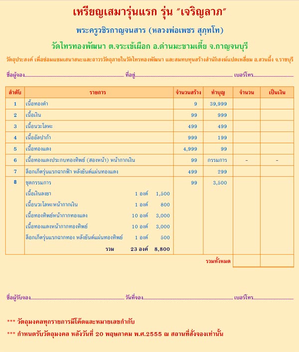 | หัวข้อกระทู้ : รายชื่อศูนย์จองเบื้องต้นที่ีเปิดจอง ...เหรียญเสมารุ่นแรก รุ่นเจริญลาภ หลวงพ่อเพชร วัดไทรทองพัฒนา |