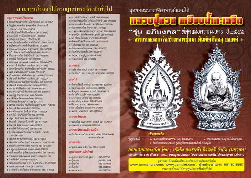 โบชัวร์ชุดแรก หลวงปู่ทวด อภิมงคล ออกแล้วครับ ตอนนี้กำลังทยอยจัดส่งตามศูนย์และศูนย์ต่างจังหวัดจัดส่งไปรษณีย์ให้ครบแล้วครับ....... สำหรับการประชาสัมพันธ์ต่างๆ
