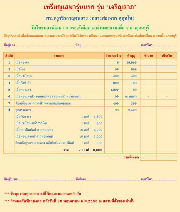 สำหรับท่านที่สั่งจองเหรียญเสมารุ่นแรก หลวงพ่อเพชร วัดไทรทองพัฒนา จ.กาญจนบุรี