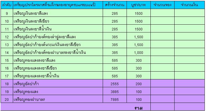 ยอดการให้บูชาเหรียญปรกไตรมาส ที่วัดละหารใหญ่มีดังนี้