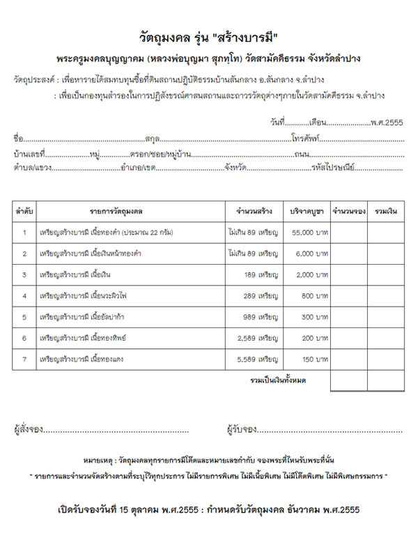 พร้อมทั้งรายการวัตถุมงคลที่จะมอบเป็นที่ระลึกให้แก่ผู้ร่วมบุญครับ