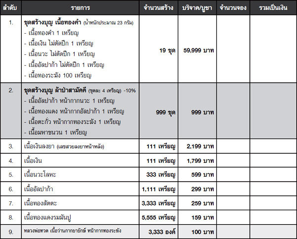 ยอดเต็มทุกรายการครับ เปิดหมด 100% ครับสำหรับงานบุญงานนี้