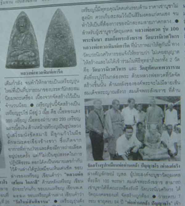 จากที่มีท่านที่อาจรู้ทันไม่ถึงการณ์ ออกมาโหวตว่าเหรียญเสมาหน้าเลื่อน 100 ปี หลังลายเซ็นต์ ที่จัดสร้างโดยวัดโนนจำปา เป็นรุ่นเดียวกับที่หนังสือพิมพ์ข่าวสดลงไว้ นั้นเป็นการเข้าใขที่ผิดน่ะครับ ลองไปสังเกตุพิมพ์ทรงทั้งแบบเหรียญเสมา และพิมพ์เตารีดได้ครับ อาจดูคล้ายแต่ก็ไม่ได้กันหมดซ่ะทีเดียว โดยเฉพาะด้านหลังของเหรียญเสมา ด้านหลังของเหรียญจะเป็นสัญญลักษณ์ 100 ปี ที่ถูกต้องและมีลายเซ็นต์อยู่ใต้สัญญลักษณ์ จึงเรียนมาให้ท่านทั้งหลายได้รับทราบไว้ ณ ที่นี้ครับ |