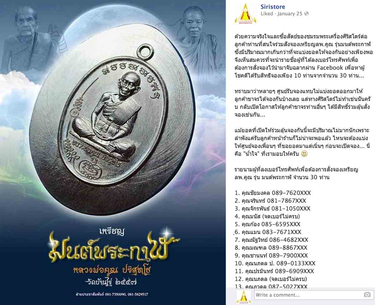 | หัวข้อกระทู้ : ** ประกาศผลการลุ้นสิทธิ์ได้จองเหรียญทองแดง รุ่น มนต์พระกาฬ ราคาวัดกับศิริสโตร์ ** |