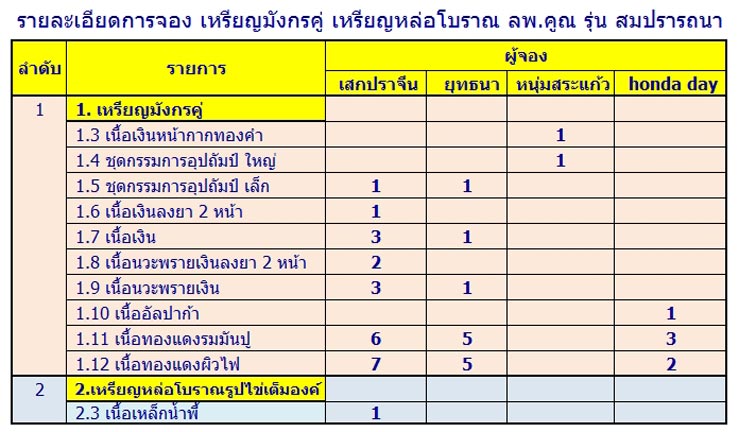 มา up date กันอีกครั้งครับ รายละเอียดตามตารางสรุปเลยครับ เริ่มจากรุ่น สมปรารถนา ครับ