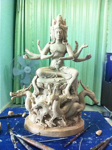 ในกระทู้นี้...จึงได้นำงานต้นแบบพร้อมภาพร่างมาลงให้ทุกท่านได้ชมไปพลางก่อนครับ..โดยงานต้นแบบที่เห็นในภาพ เป็นงานที่ "อาจารย์พิทักษ์" กำลังปั้นองค์ท้าวมหาพรหม ในขนาดบูชา หน้าตัก ๕ " ครับ...ซึ่ง มีความคืบหน้าประมาณ ๒๐% แต่เพราะถูกสอบถามมามาก จึง...ได้นำมาให้ได้ชมกันก่อนครับ.. |