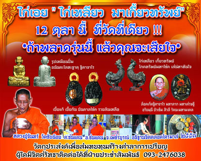 ไก่เอย ไก่เหลียว มาเกี้ยวทรัพย์ 12 ตุลา นี้ ที่วัดที่เดียว !!