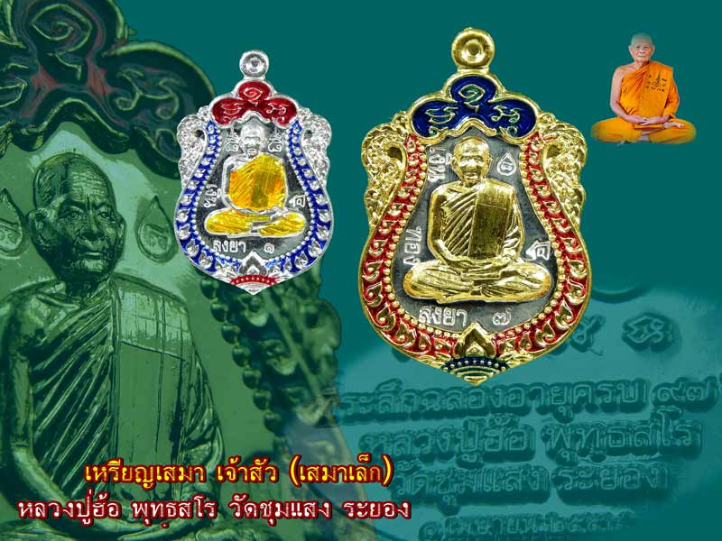 วัตถุมงคลฉลองอายุครบ 97 ปี หลวงปู่ฮ้อ พุทธสโร วัดชุมแสง จ.ระยอง วัตถุประสงค์ในการจัดสร้าง เพื่อสมทบทุนสร้างศาลาปฏิบัติธรรมวัดชุมแสง