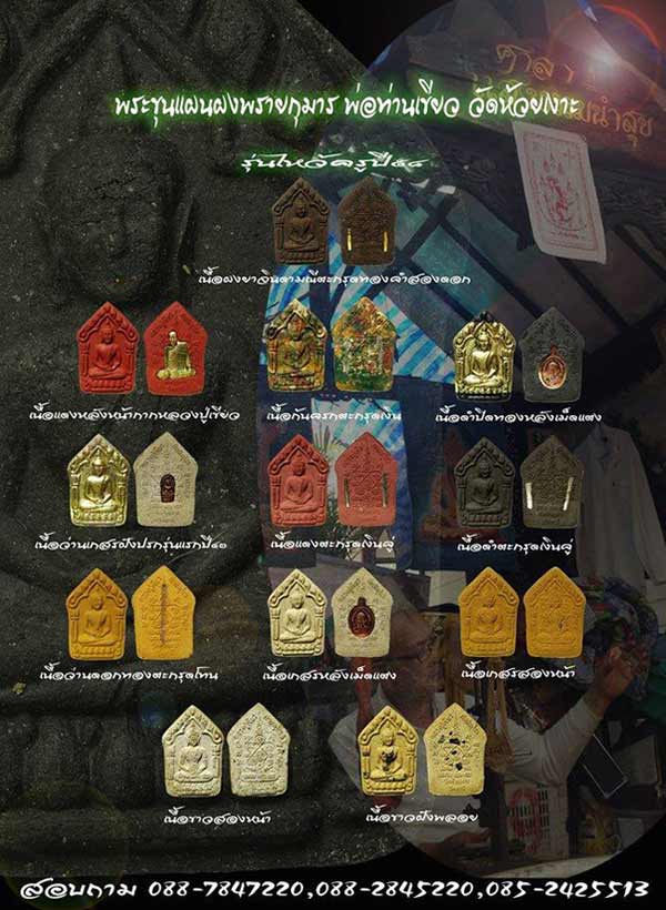 พระขุนแผนผงพรายกุมาร รุ่นไหว้ครูพ่อท่านเขียว วัดห้วยเงาะปัตตานี ปี ๕๘ อ.ชาลี ศิษย์ของหลวงปู่ทิมวัดละหารไร่ ผู้สร้างขุนแผนสากหักของหลวงปู่ทิม ที่ดังมาแล้ว ในเวลานี้ เป็นคนกดพระขุนแผนผงพรายกุมาร ไหว้ครูพ่อท่านเขียว เองทั้งหมด โดยการนำเอามวลสารเก่า ที่ท่านได้เก็บเอาไว้มากดเป็นพระชุดนี้ขึ้นมา ท่านอ.ชาลี กดในวัดบำเพ็ญใต้ สถานที่กดเป็นสุสานเก็บศพเก่าของวัด ก่อนกดพระต้องถือศิลและดูเวลาฤกษ์ยามทุกครั้ง พระขุนแผนชุดนี้ ปลุกเสก 3 วาระ