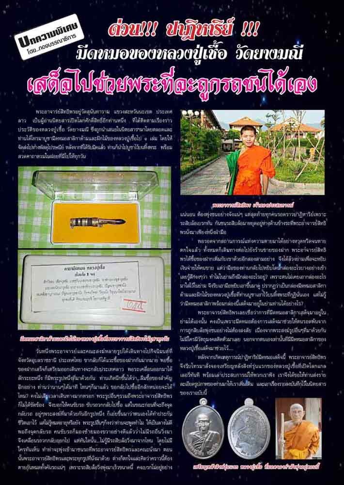 หลวงปู่เชื้อ ตุฏฺฐสีโล อายุ ๘๘ ปี ๖๘ พรรษา พระเกจิขลังผู้เร้นกาย ซ่อนสายวิทยาคม เรียนกรรมฐานและวิชาอาคมกับ หลวงพ่อภัตร์ วัดโบสถ์ หลวงพ่อซวง วัดชีปะขาว หลวงพ่อโอภาสี อาศรมบางมด หลวงพ่อทบ วัดชนแดน หลวงพ่อมุ่ย วัดดอนไร่ หลวงพ่อโอน วัดโคกเดื่อ หลวงพ่อเกษม เขมโกและอีกกว่า ๑๐ พระเกจิอาจารย์ |