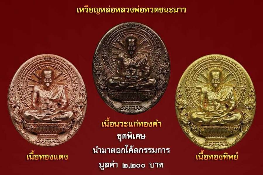 ชุดพิเศษ โดยนำเหรียญหล่อเนี้อนวะแก่ทอง ที่จัดสร้าง 500 องค์ ตามใบจอง นำมาจัดชุดพิเศษ ตอกโค็ต กรรมการ แล้วนำมารวมกับ เนื้อทองทิพย์ และเนื้อทองแดง ที่จัดสร้างเนื้อละ 1000 องค์ โดยนำหมายเลข 1-500 ทั้งเนี้อทองทิพย์ และเนี้อทองแดง มารวมกับนวะแก่ทอง โดยตอกโค็ต กรรมการ ทั้งสามเนี้อ มูลค่า 2700 บาท ให้บูชาในราคา 2500 บาท