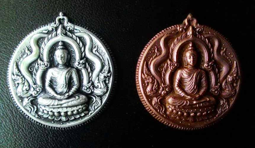 เหรียญพระพุทธมหาบารมีทองแดงขัดเงาและรมดำ