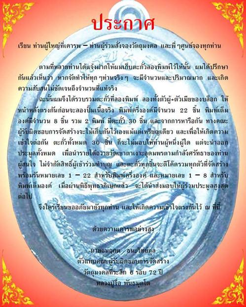 ประกาศ ตะกั่วลองพิมพ์ และเนื้อเงินลงยาเลขสวย วัตถุมงคล
