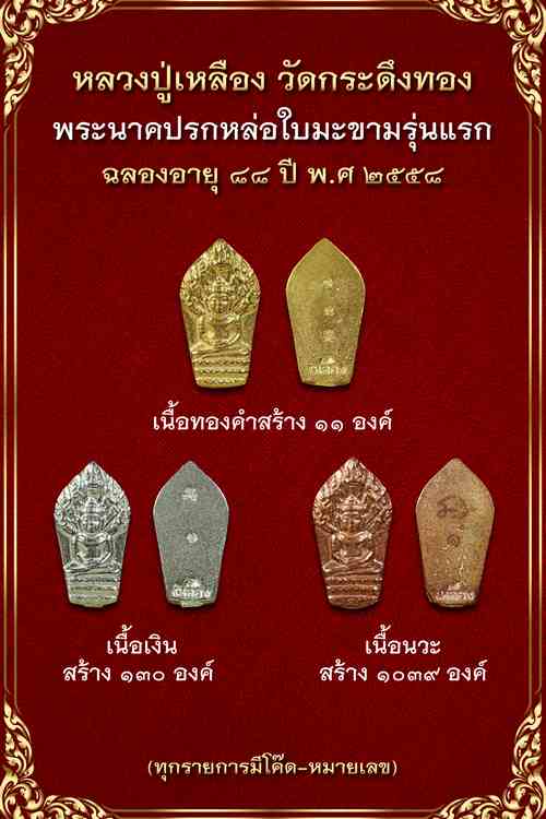 2.เนื้อทองคำ สร้าง ๑๑ องค์ๆละ ๑๒๐๐๐ บาท