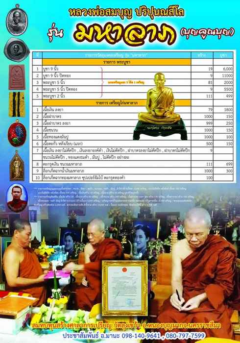 ออก ณ วัดลุงเข้า อําเภอหนองบุญมาก จ.นครราชสีมา โทร 098-1409641