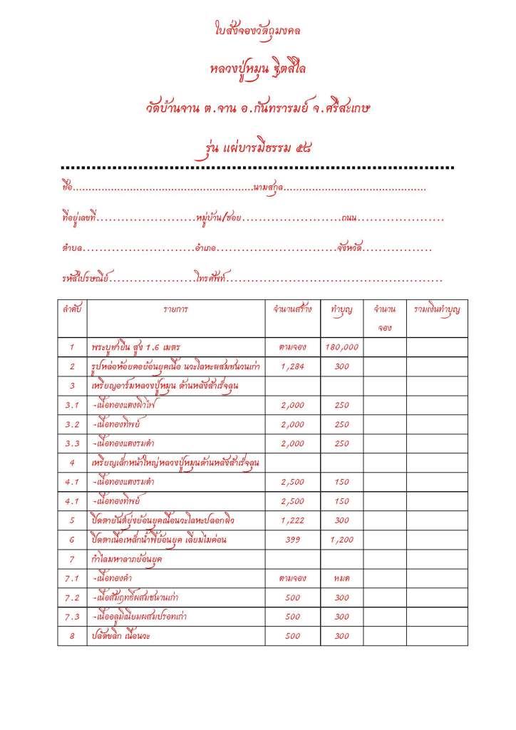 หมายเหตุ : วัตถุมงคลมีโค๊ดและ/หรือหมายเลขกำกับทุกรายการ