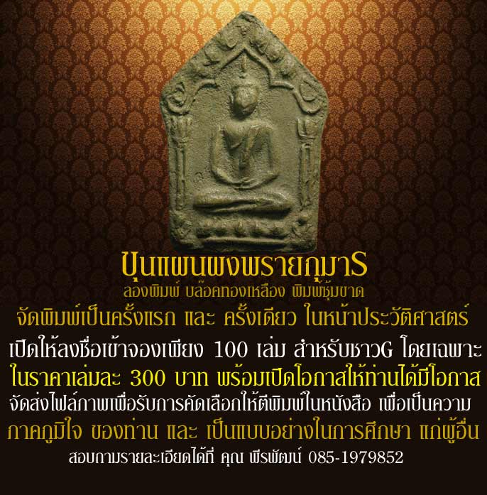 | หัวข้อกระทู้ : จัดพิมพ์เป็นครั้งแรกและครั้งเดียว จำนวนจำกัด ตามยอดการจอง หนังสือ ขุนแผนพรายกุมาร พิมพ์ซุ้มขาด |