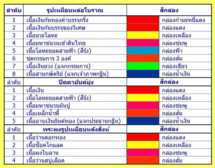 ส่วนใหญ่ก็คงจะได้รับพระที่สั่งจองกันไว้แล้ว โดยกล่องในการบรรจุในแต่ละรายการจะมีแยกสีตัวไส้กล่องด้านใน เพื่อให้รู้ได้ว่าเป็นเนื้ออะไรหรือรายการไหน