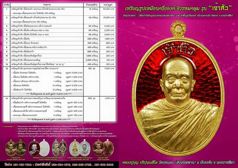 ไม่ได้อัพเดทความคืบหน้าของงานมาตรฐานสูง เกรดพรีเมี่ยมอย่างเหรียญเจ้าสัว หลวงปู่บุญ วัดปอแดง ให้พี่ๆได้ชมกันสักพักใหญ่ๆ วันนี้มีโอกาสเลยขอนำรายละเอียดต่างๆทั้งโบรชัวร์ เหรียญจริง รวมถึงแพคเกจจิ้ง และฤกษ์วาระพิธีอธิษฐานจิตปลุกเสกมาแจ้งให้ได้ทราบกันครับ
