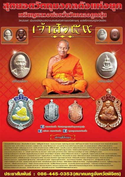 เตรียมพบกับวัตถุมงคล หลวงพ่อหวั่น วัดคลองคูณ "รุ่นเจ้าสัว ๕๙" โดยทีมงานสร้างเดิมจากรุ่นอำเภอตะพานหิน ที่เคยสร้างประวัติศาสตร์ในสายนี้ ยอดจองหมดภายในสองชั่วโมง