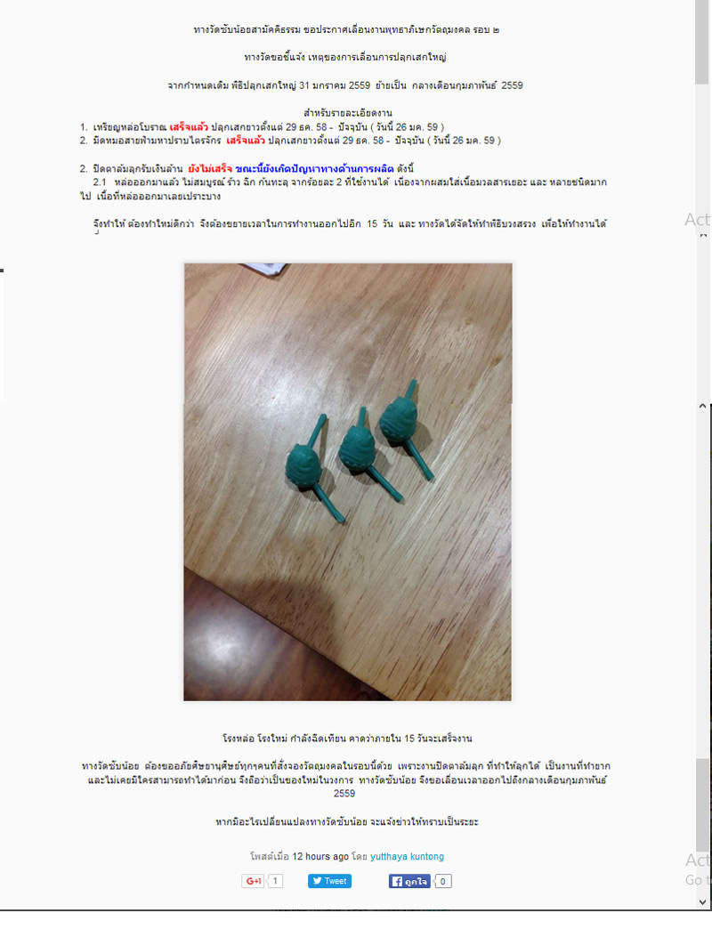 ทั้งนี้คณะกรรมการวัดซับน้อย ทีมผู้ปฏิบัติงาน ตลอดจนทีมช่างฝ่ายผลิต กราบขออภัยผู้ที่ร่วมจองวัตถุมงคลชุดสร้างศาลาหลวงปู่จันทร์ในครั้งนี้ด้วย