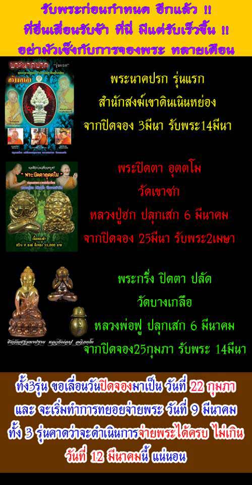 สำหรับท่านที่ได้ทำการจองไว้ในพระสามรุ่นดังต่อไปนี้