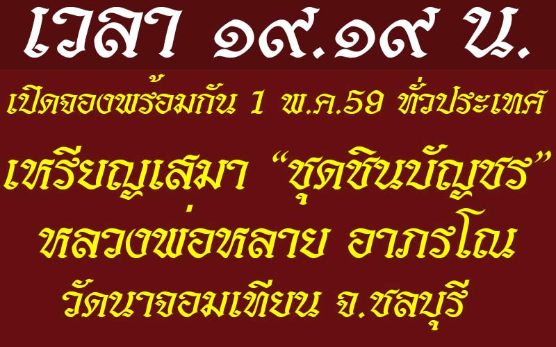 #ทั้งนี้คณะทีมงาน จะดำเนินการจัดสร้างและจำหน่ายวัตถุมงคลเหล่านี้ ภายในปี พ.ศ.๒๕๕๙ เพื่อนำรายได้มาดำเนินการตามวัตถุประสงค์ที่แจ้งไว้ให้สำเร็จลุล่วง
